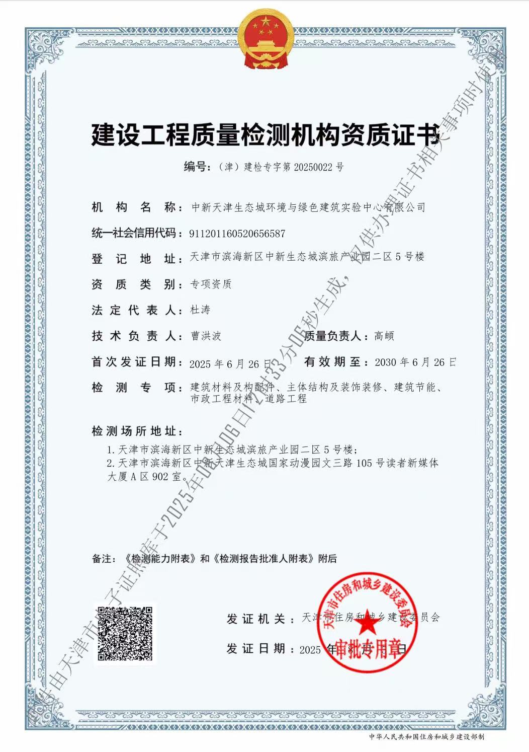 公司發(fā)展至今,技術能力不斷拓展和提升?,F已具備檢驗檢測機構資質(簡稱CMA)、天津市建設工程質量檢測機構資質、中國合格評定國家認可委員會實驗室認可資質(簡稱CNAS)等資質。同時,公司已被認定為高新技術企業、天津市專精特新中小企業、濱海新區首家近零能耗建筑第三方測評機構。公司主要從事建筑材料及構配件、主體結構及裝飾裝修、建筑節(jié)能、道路工程等檢驗檢測服務,以及綠色建筑節(jié)能評估、近零能耗、房屋質量安全鑒定等咨詢服務業務。公司在冊員工為60人,其中高級職稱30名,中級職稱20名,初級職稱10名。